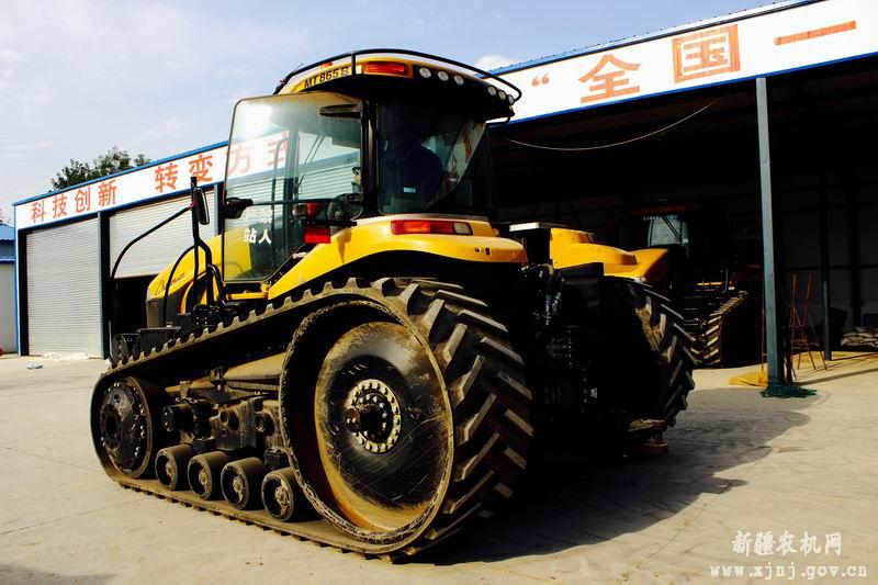 图为沙湾县宏基合作社引进的橡胶履带式拖拉机